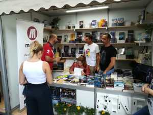 Continúo contándoos. Fui hasta el hotel a dejar la maleta, piqué algo y tras una ducha me dirigí hacia el paseo Alfonso X, donde se celebraba la feria. Allí estuve con mi editor (y escritor) Javier Salinas (Dulces de prensa, Benet…) y con otros compañeros como Juan Tebar (Benet), JB Rodríguez Aguilar (Sones de Iemanyá), Rubén Santiago (Ultramar) o Carlos Dosel (El legado del mal). Firmé algunos ejemplares, hablé con quienes se acercaron, compartí impresiones con escritores y tras terminar decidí dar un paseo por la feria para ver el resto de las casetas.