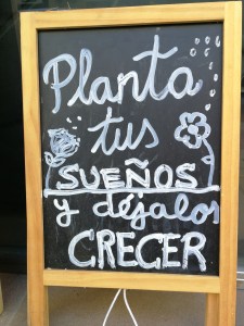 Empiezo por el principio y por la primera fotografía que hice al poner los pies en Murcia. No es nada del otro mundo, pero al bajarme del coche sobre las 13:15h lo primero que vi fue esta frase y creo que como mantra no está nada mal: Planta tus sueños y déjalos crecer. Yo añadiría algo así como “riégalos sin ahogarlos”, porque cuanto más trabajemos en ellos mejor.